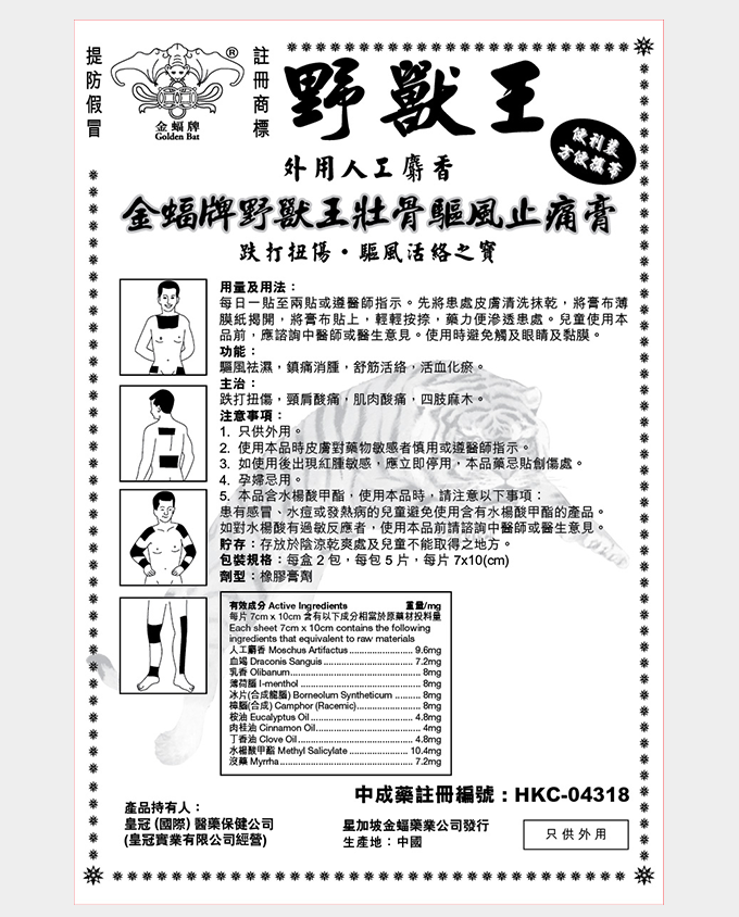 金蝠牌 野獸王壯骨驅風止痛膏