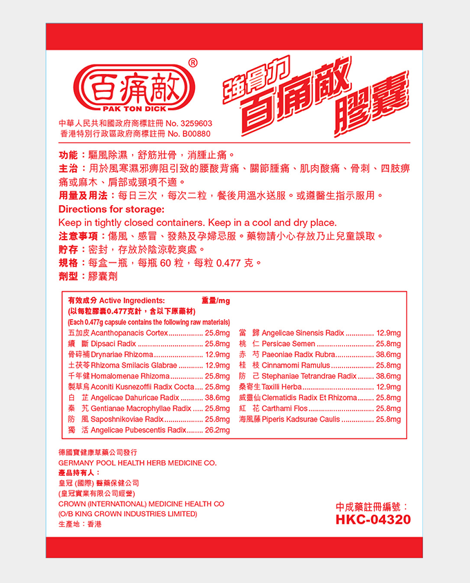 【主治】用於風寒濕邪痹阻引致的腰酸背痛、關節腫痛、肌肉酸痛、骨刺、四肢痹痛或麻木、肩部或頸項不適。
