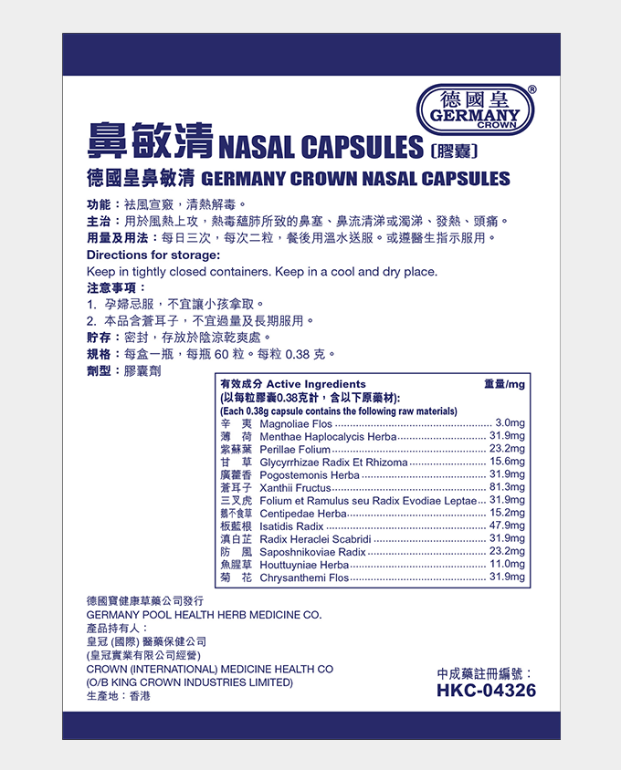 【成分】辛夷,薄荷,紫蘇葉,甘草,廣藿香,蒼耳子,三叉虎,鵝不食草,板藍根,滇白芷,防風,魚腥草,菊花
