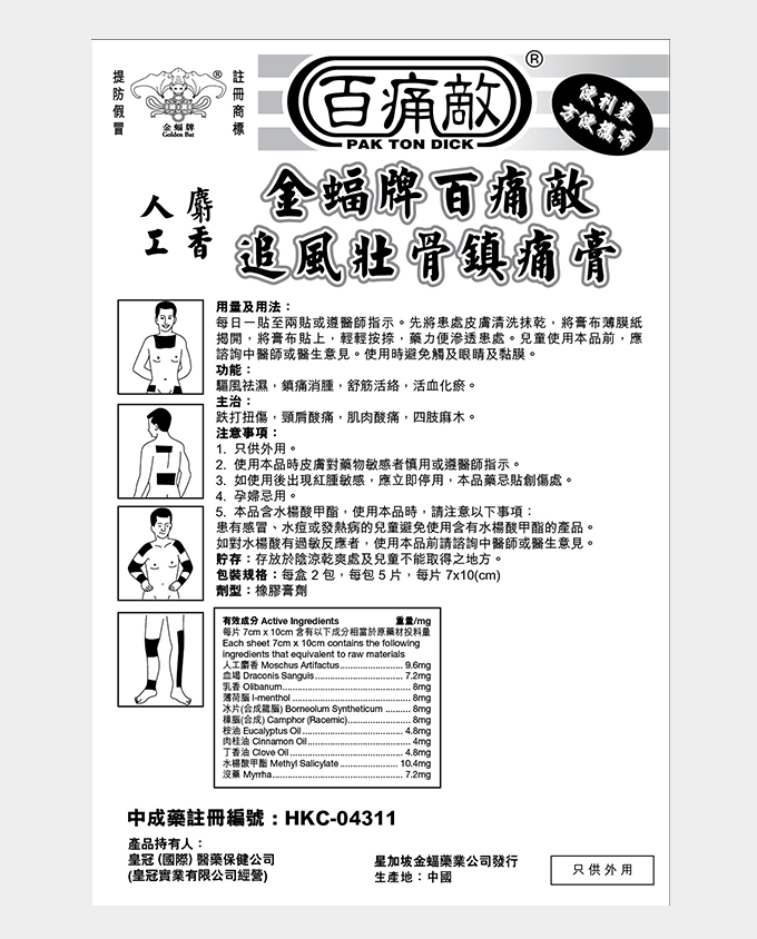 金蝠牌百痛敌 追风壮骨镇痛膏