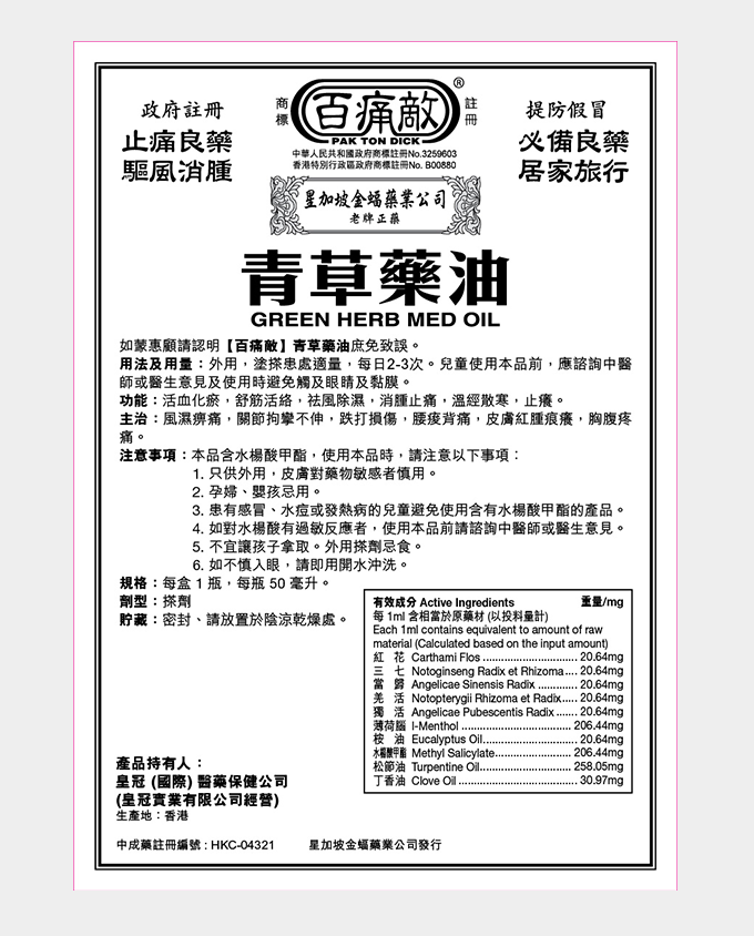 【成分】红花,三七,当归,羌活,独活,薄荷脑,桉油,水杨酸甲酯,松节油,丁香油